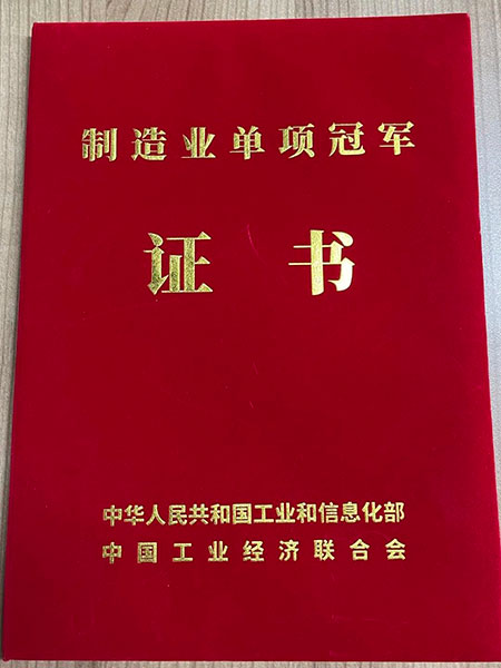 国家工信部为了指导中国制造业向高精尖领域发展,评选“制造业单项冠军企业”。将此荣誉定义为长期专注于制造业、研发生产技术国际领先、拥有强大的市场地位、单项产品市场占有率全球前3位。获得此评定的产品,意味着获得了国家最权威的认可,代表着细分领域内的全国最高水平以及全球范围内领先的市场份额。